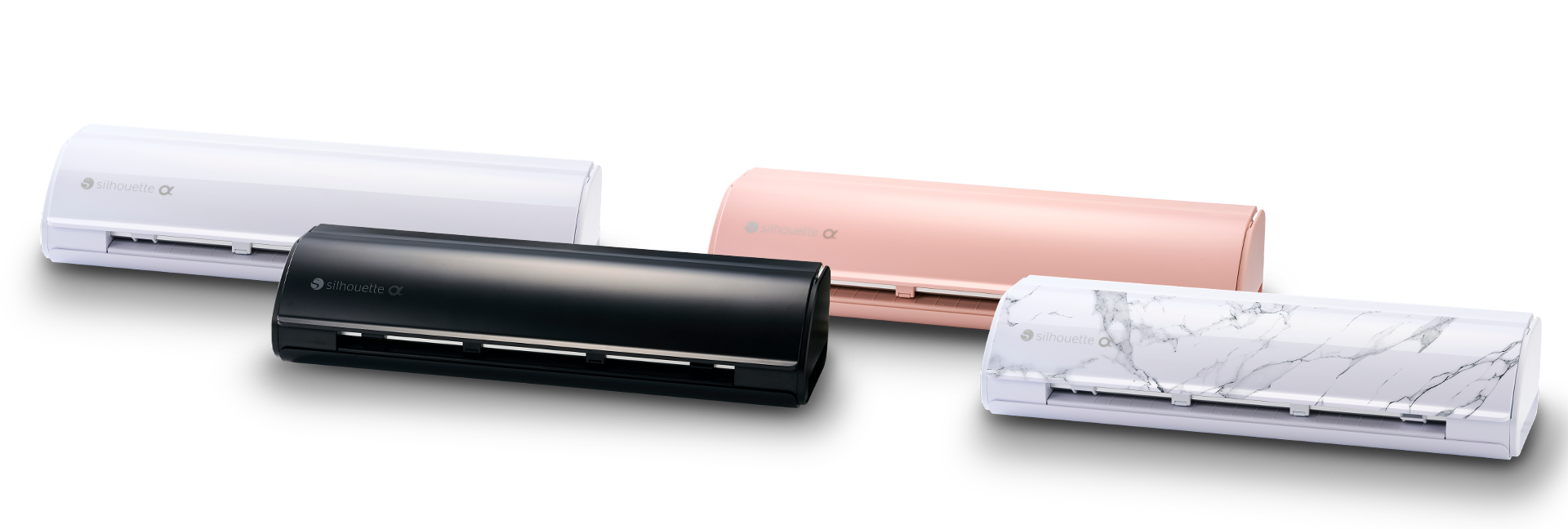 Design en uitvoeringen: verkrijgbaar in Classic White, Matte Black, Matte Pink en Bianco Carrara (marmerlook). De CAMEO5 α PLUS, met werkbreedte tot 38 cm, verschijnt in Matte Black.